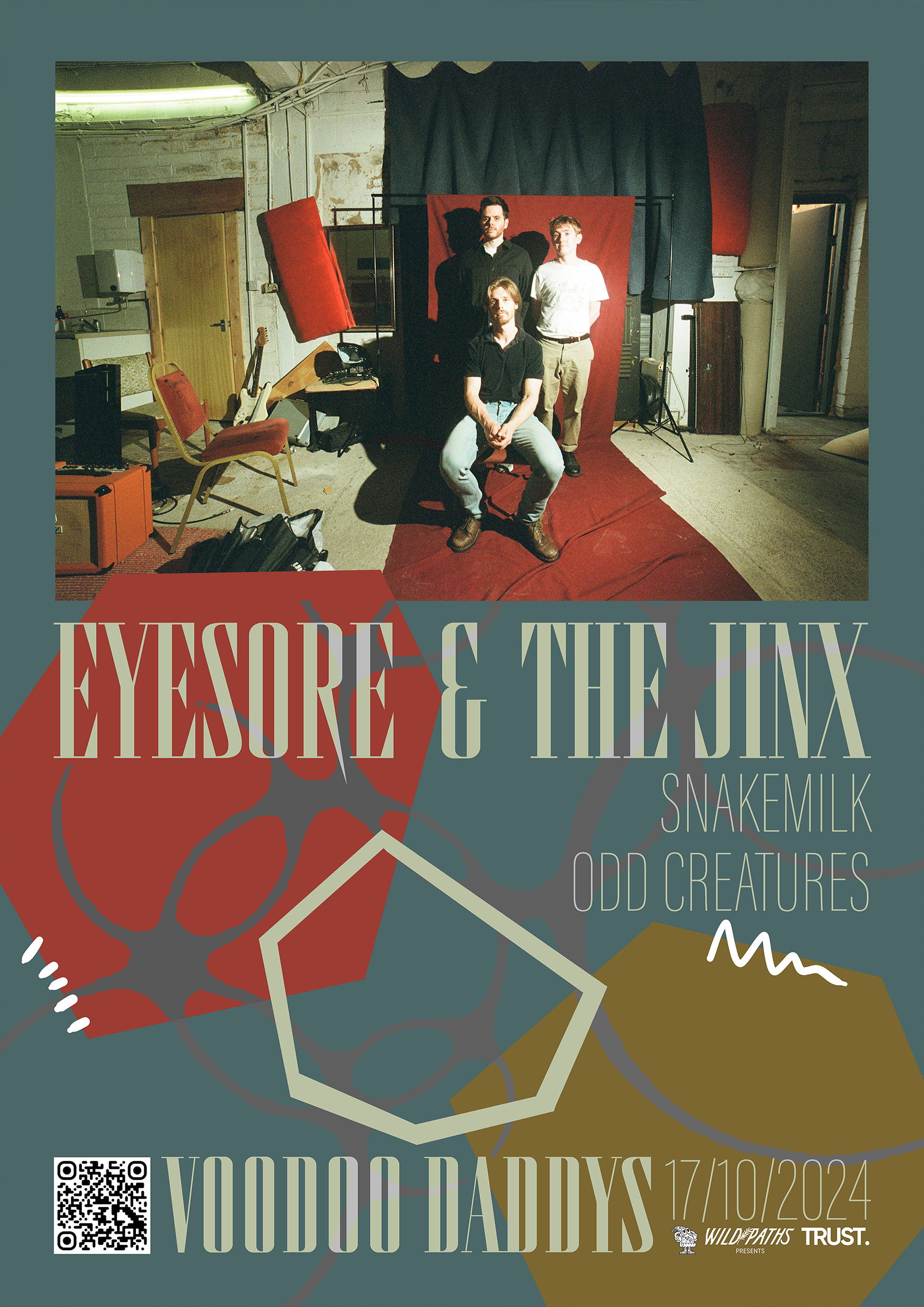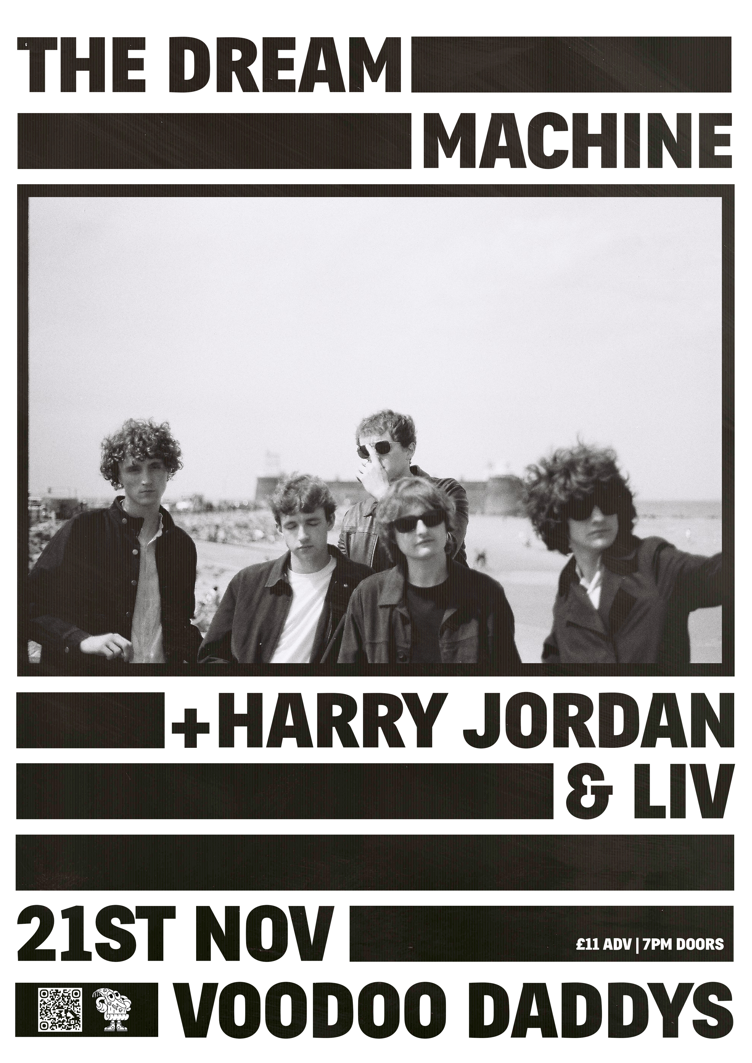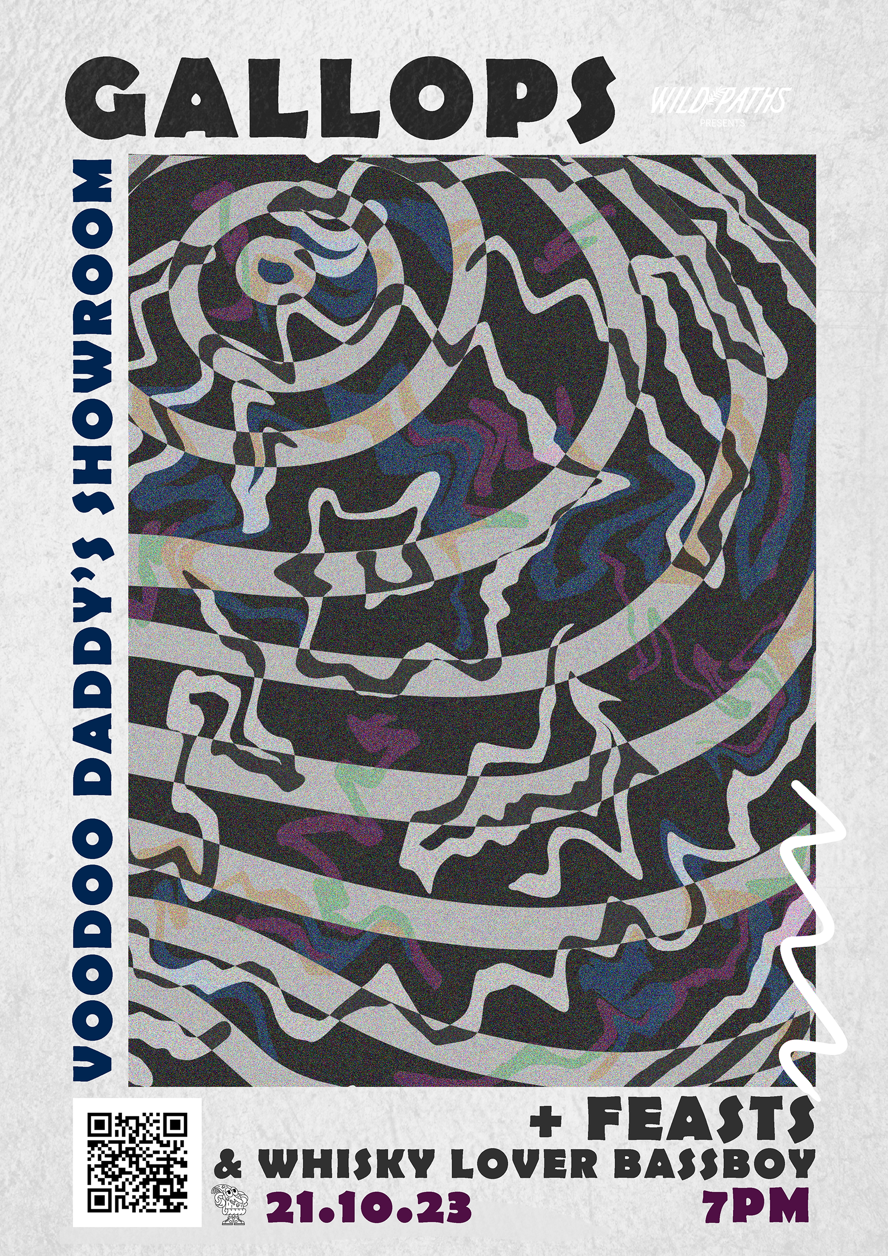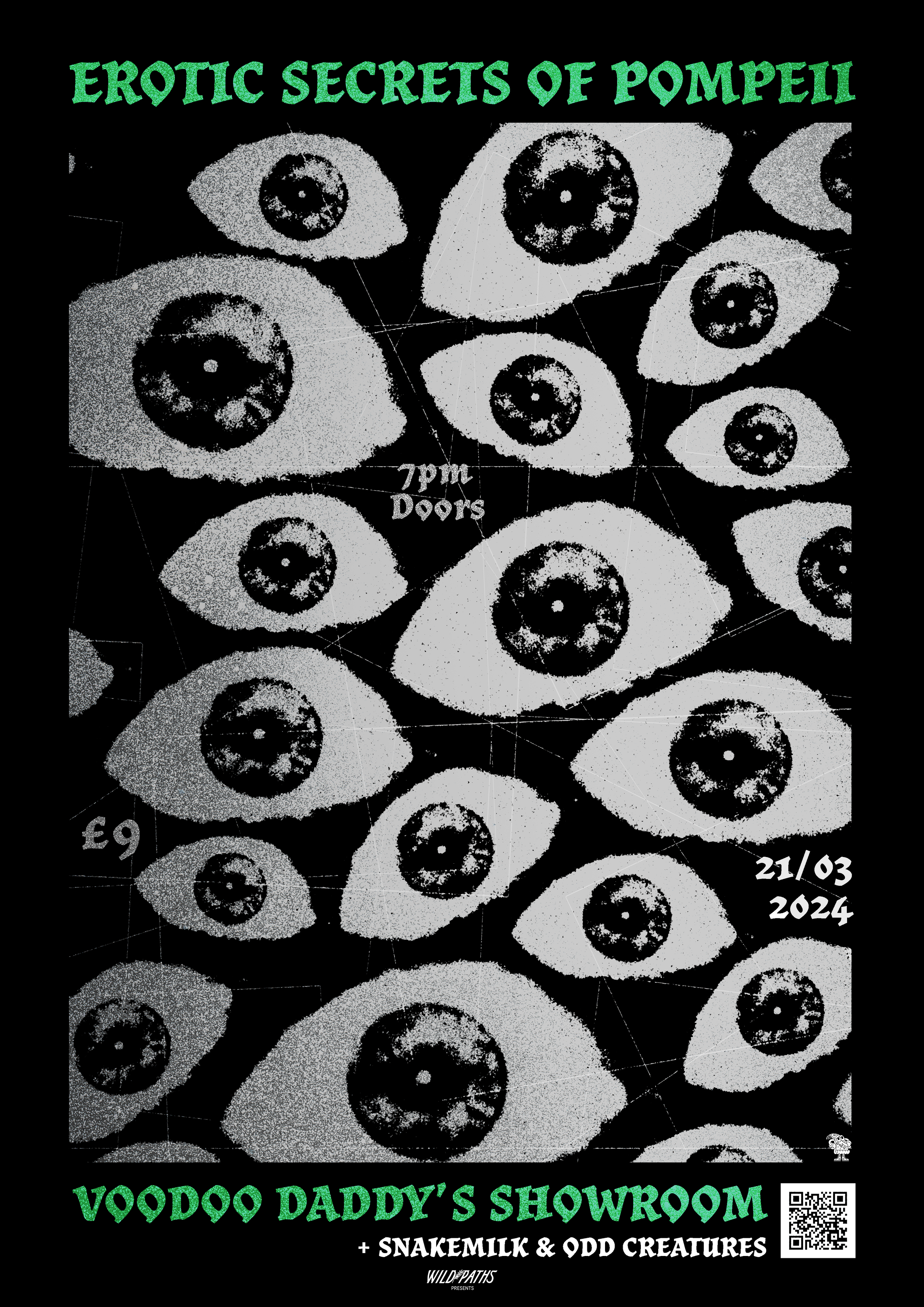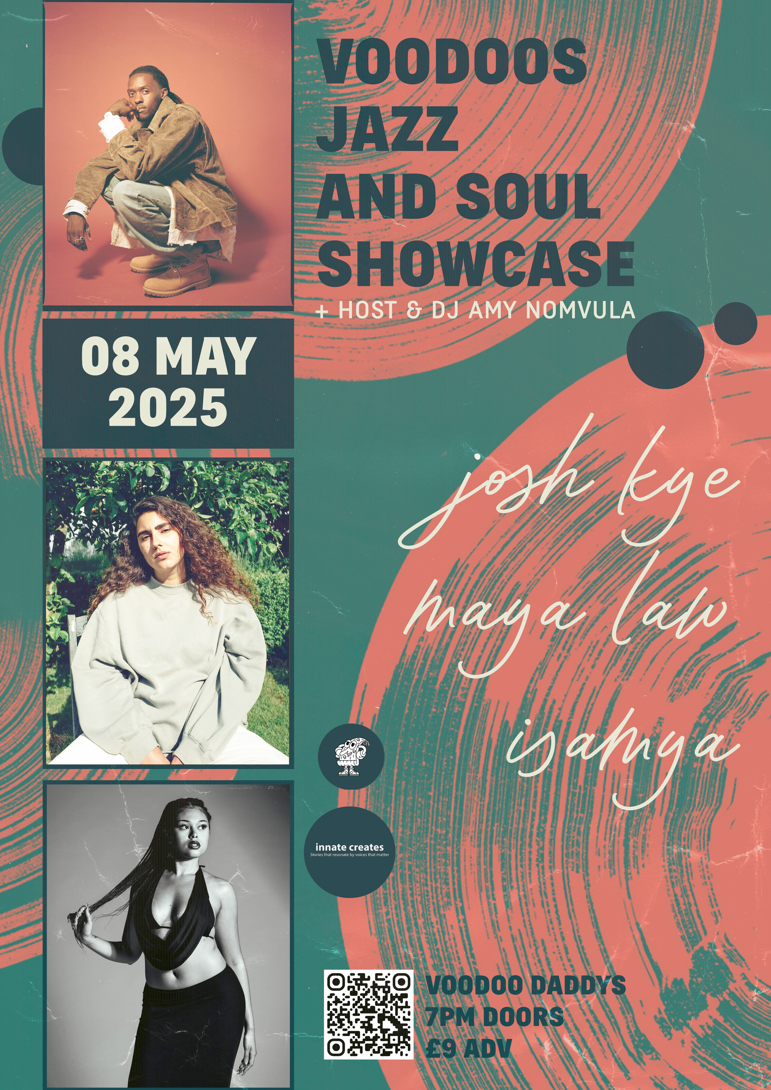 A collection of show posters designed for live music events, combining bold illustration, expressive typography, and strong colour palettes