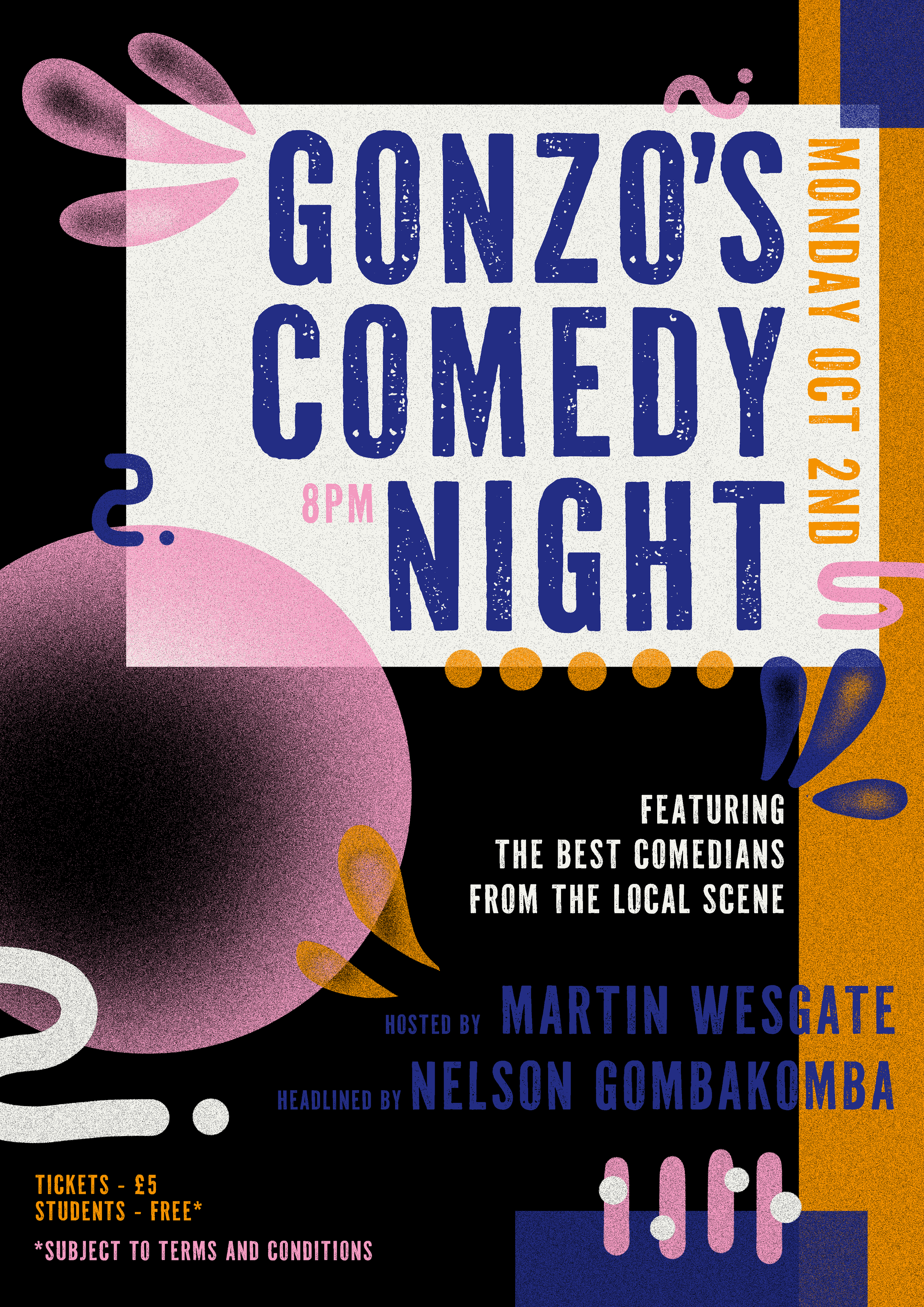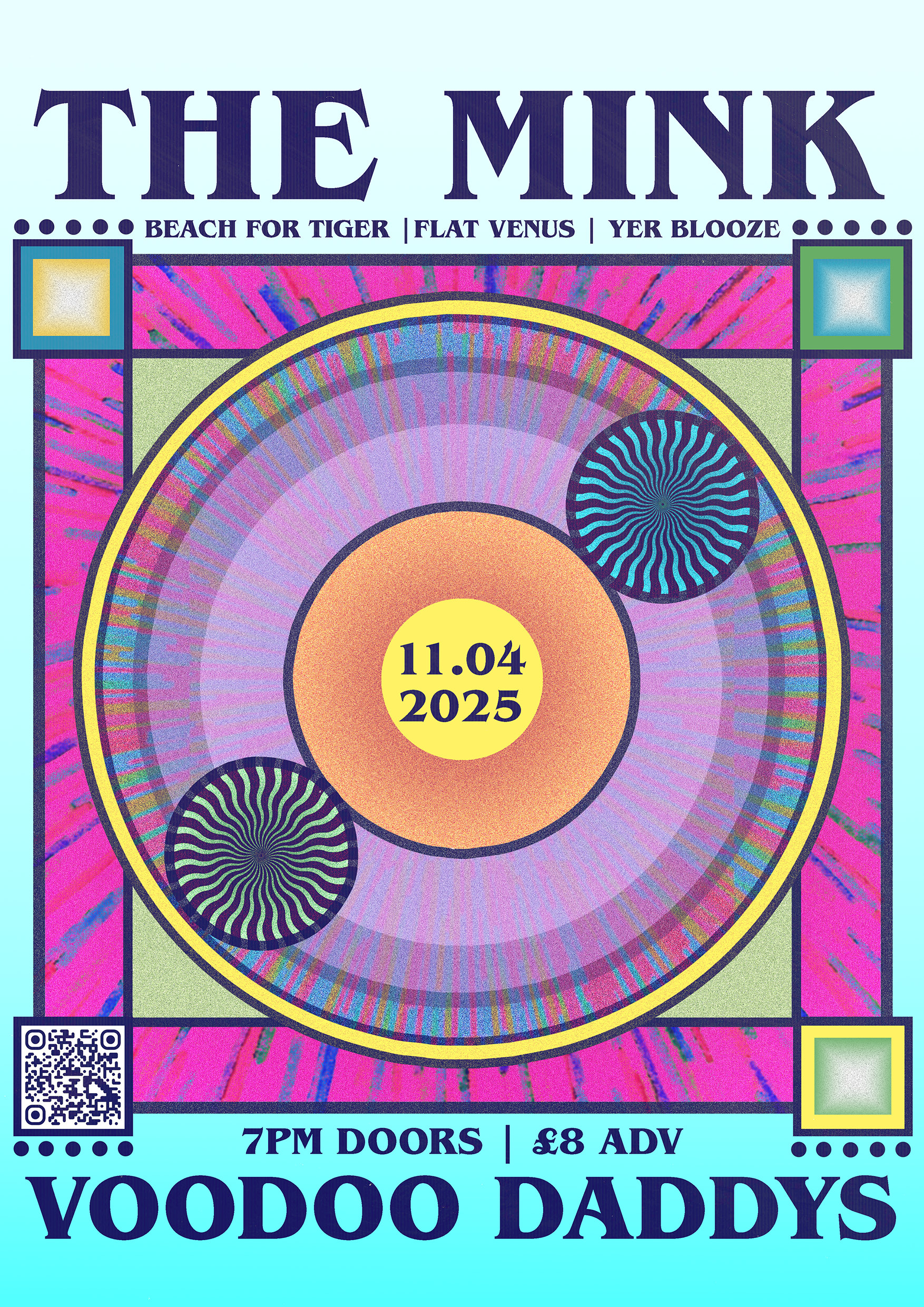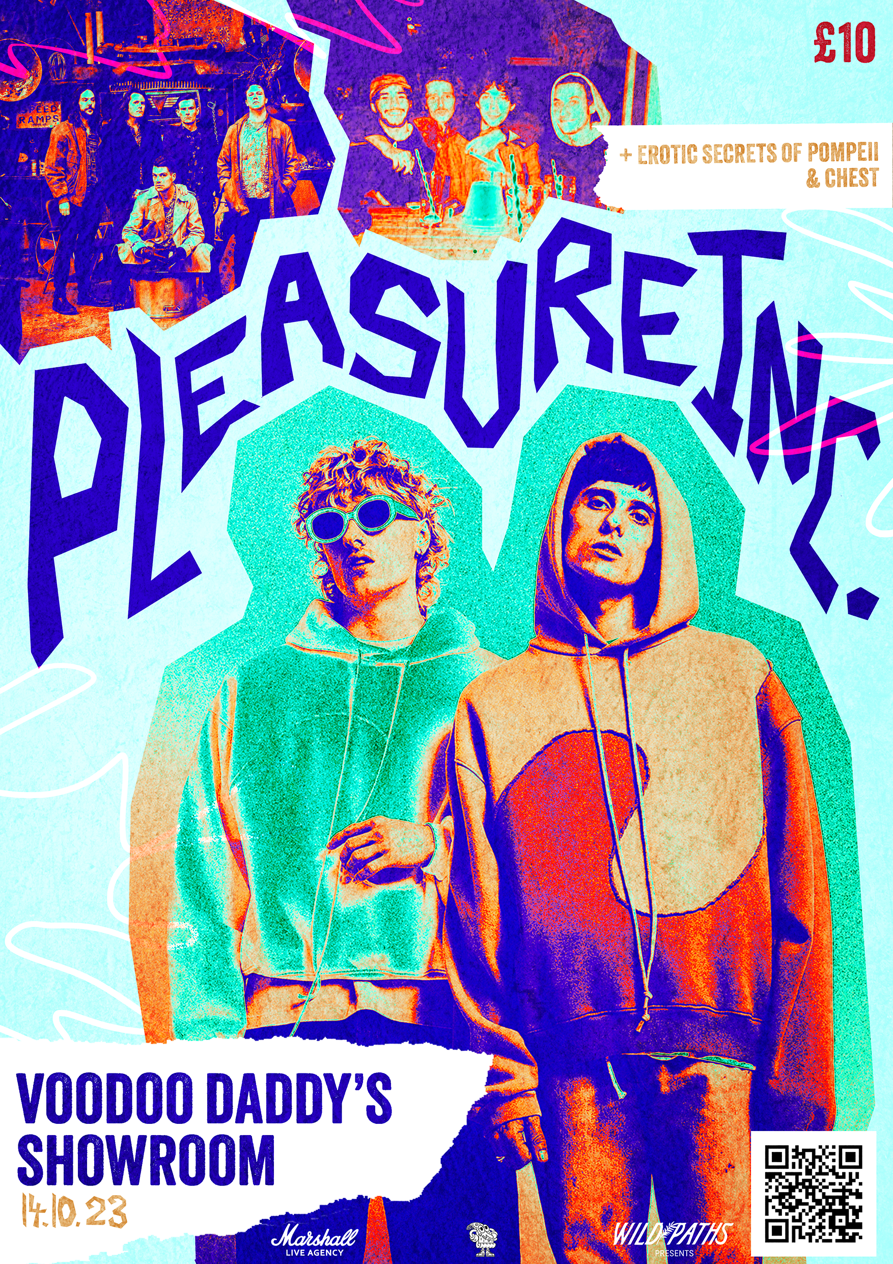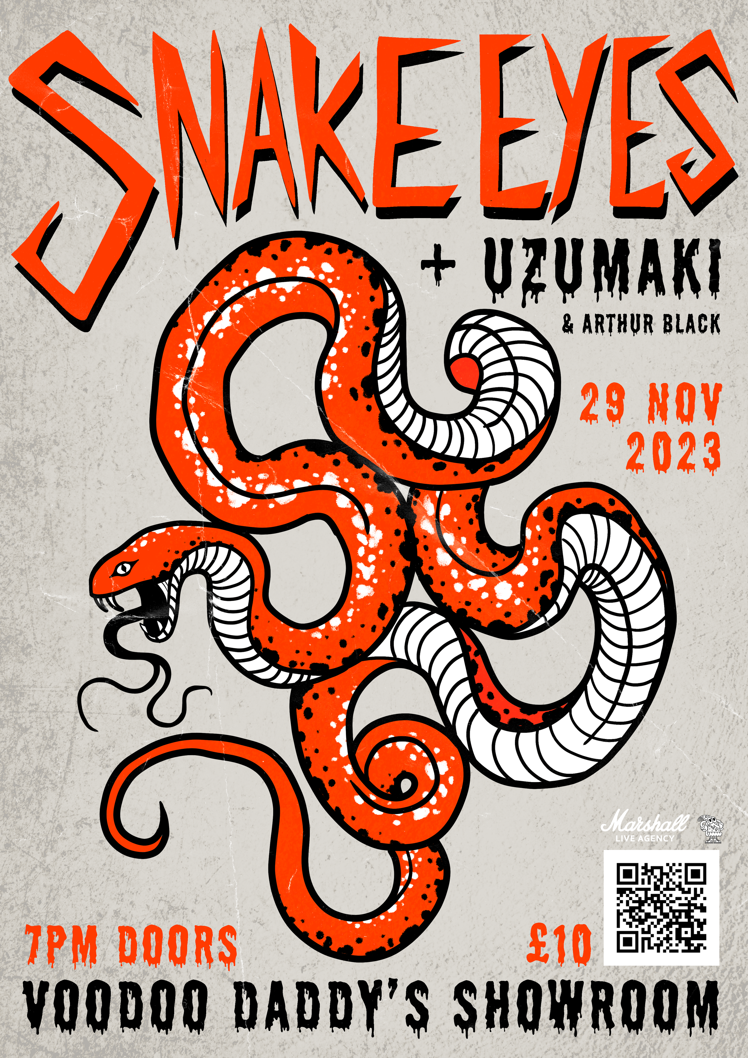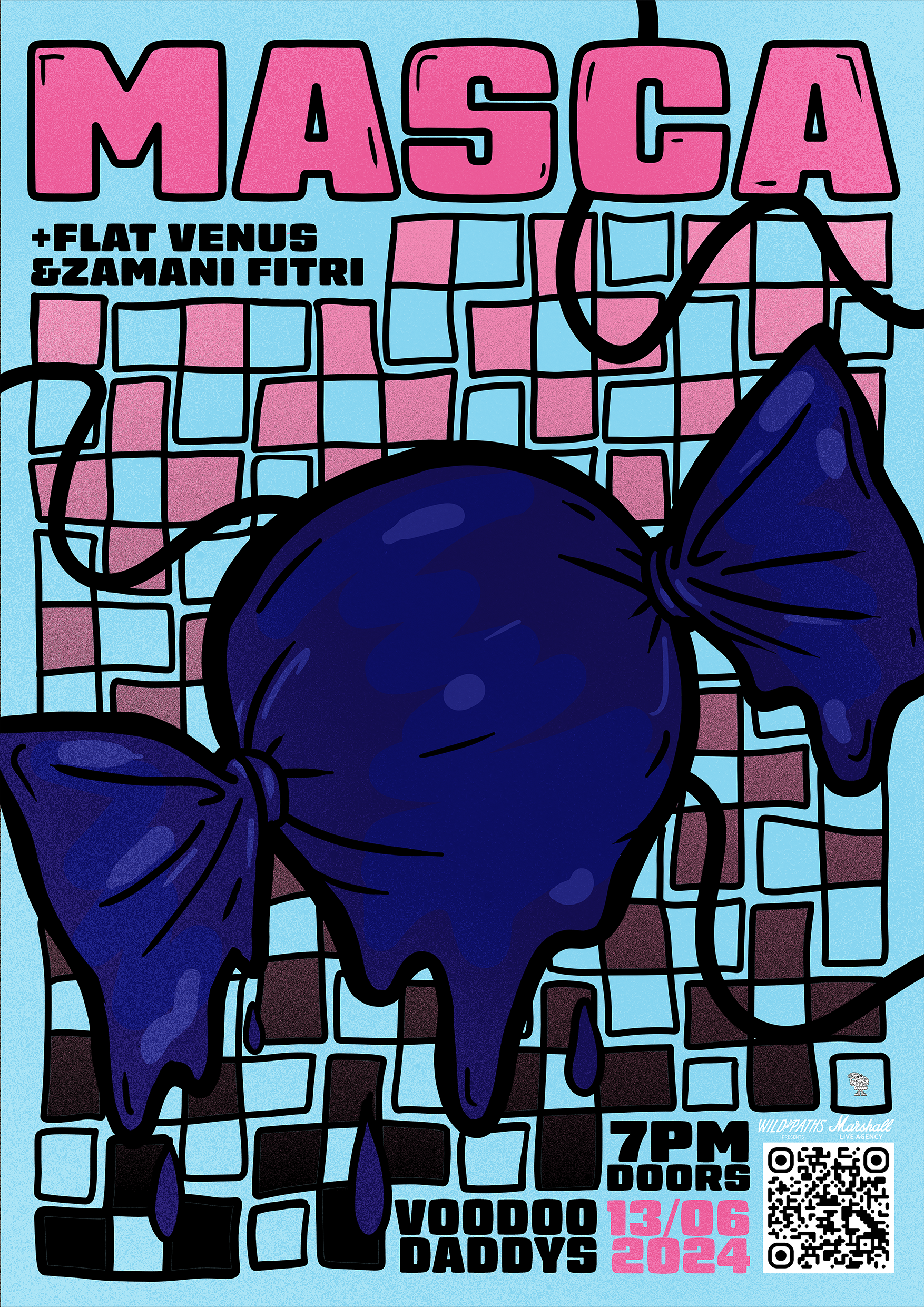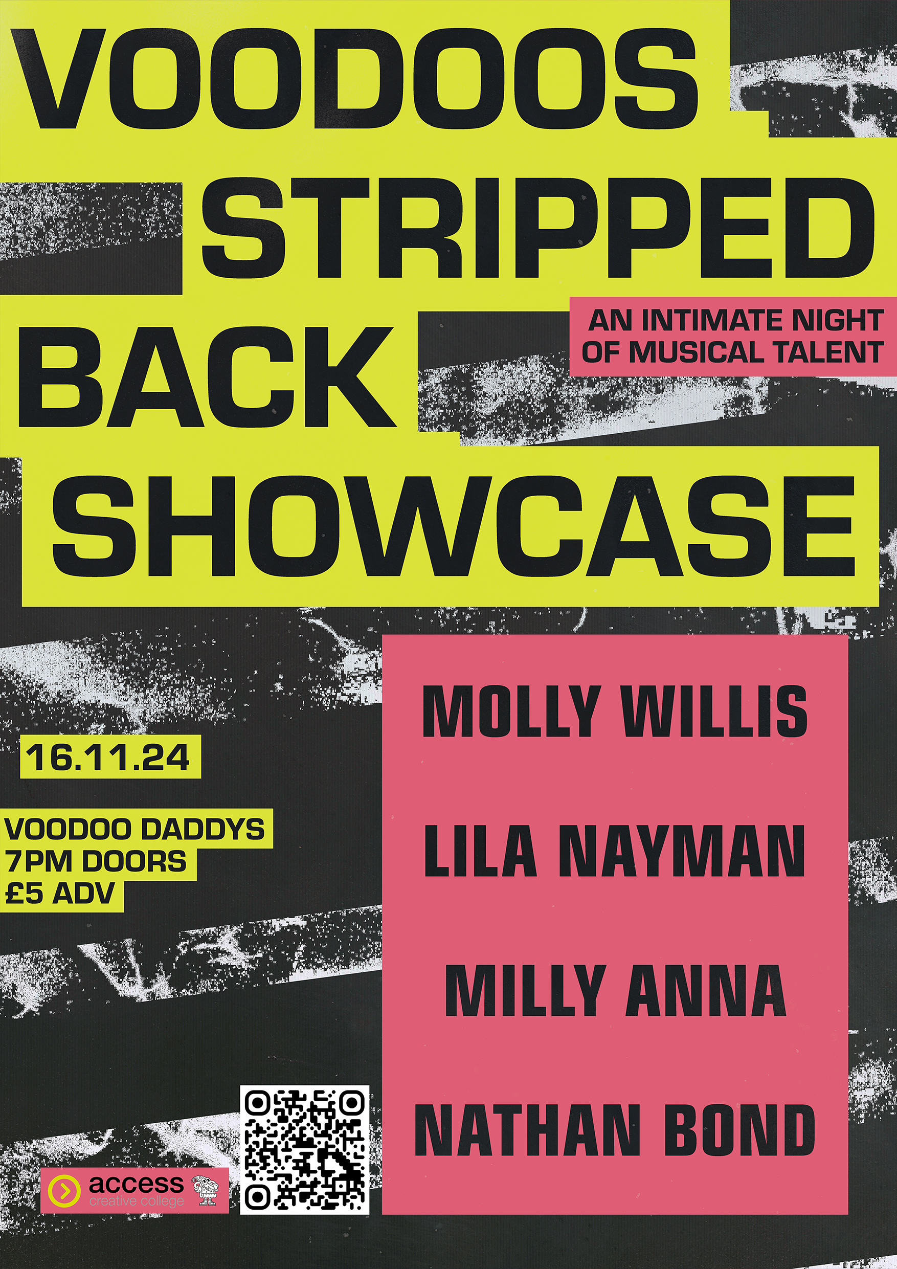 A collection of show posters designed for live music events, combining bold illustration, expressive typography, and strong colour palettes