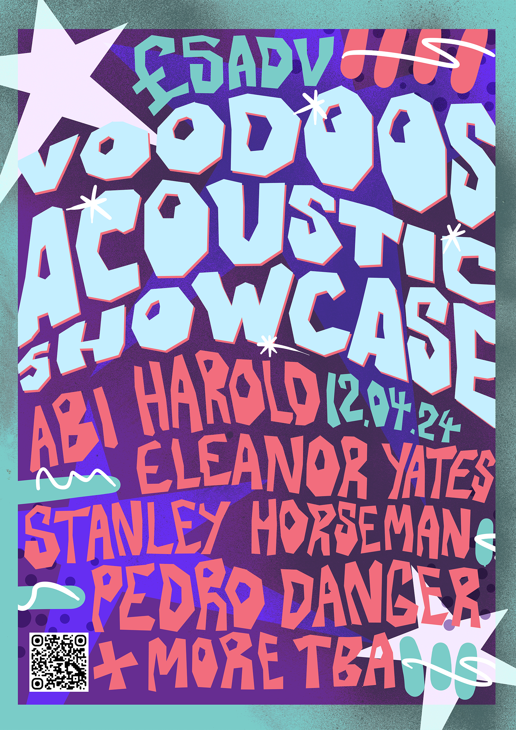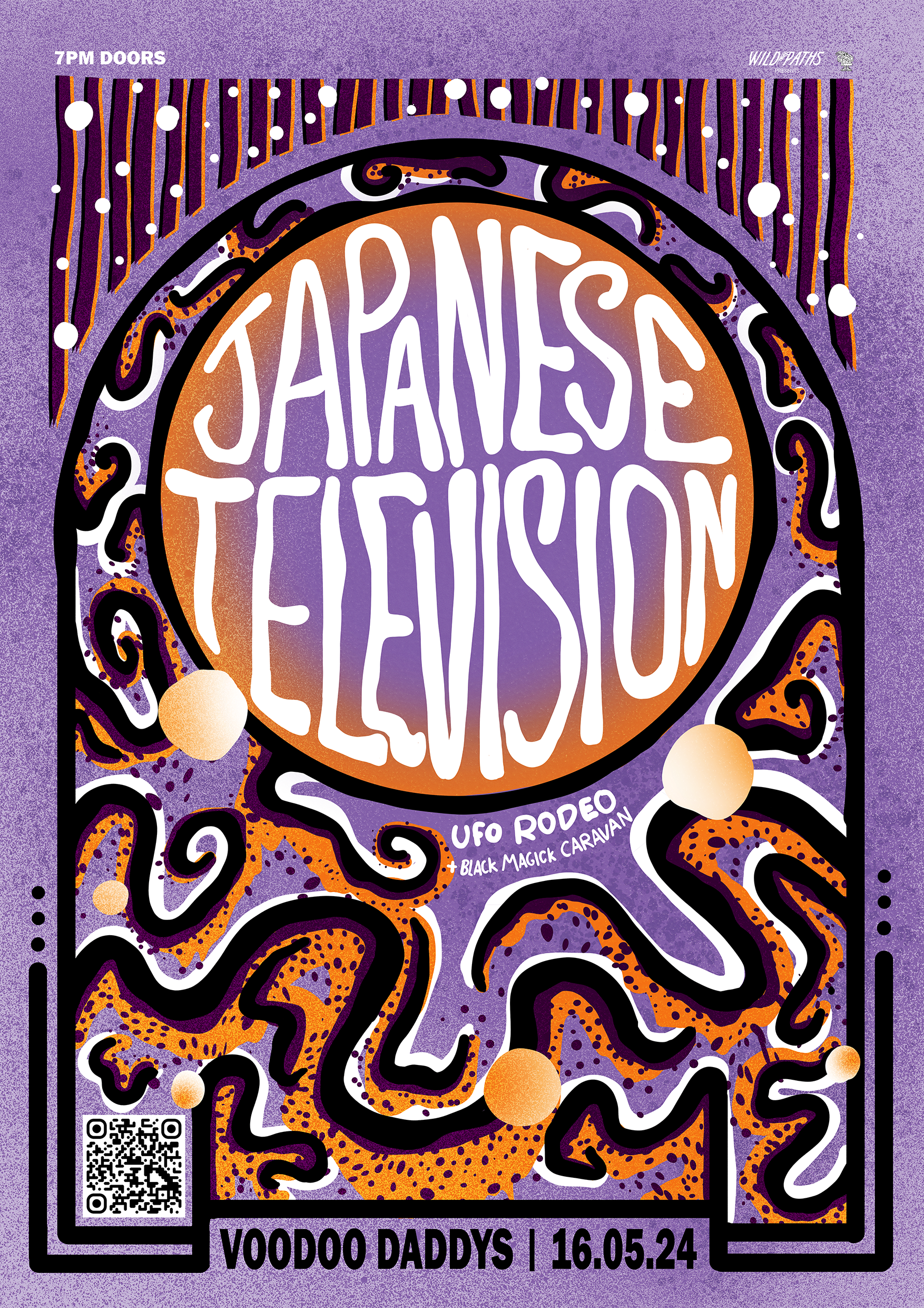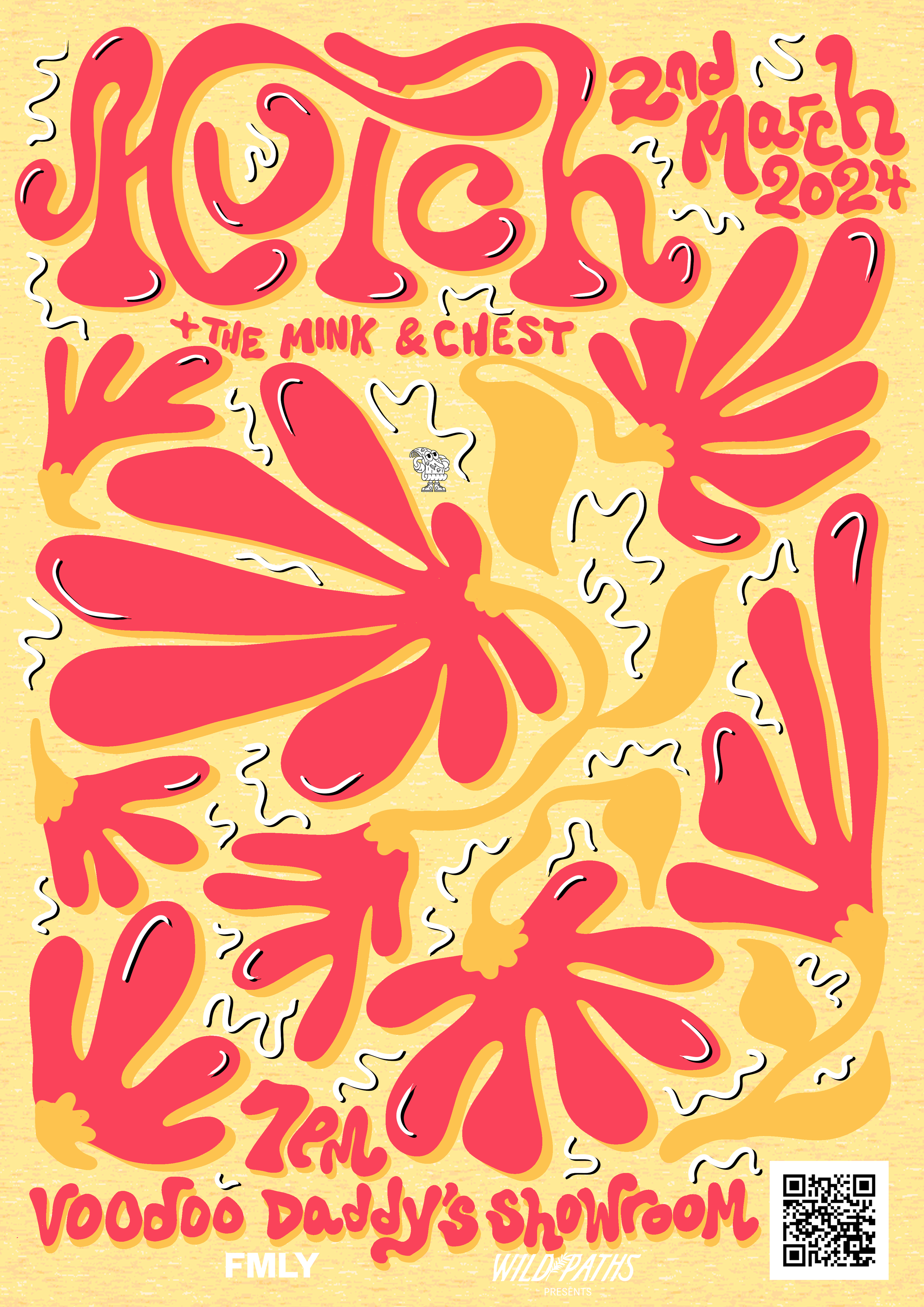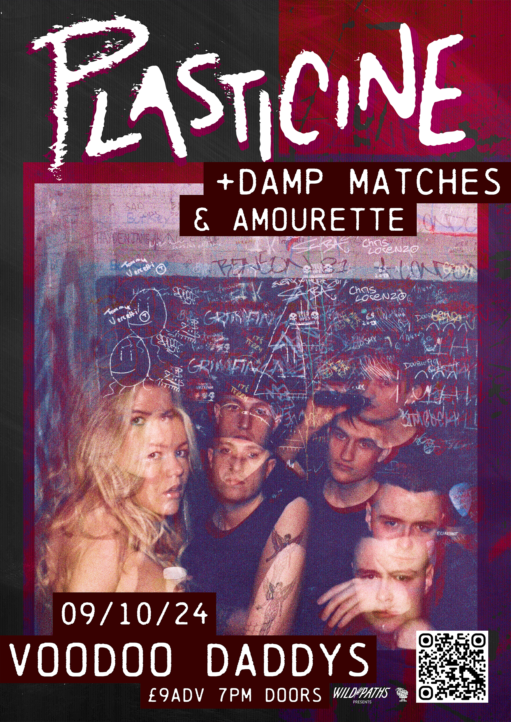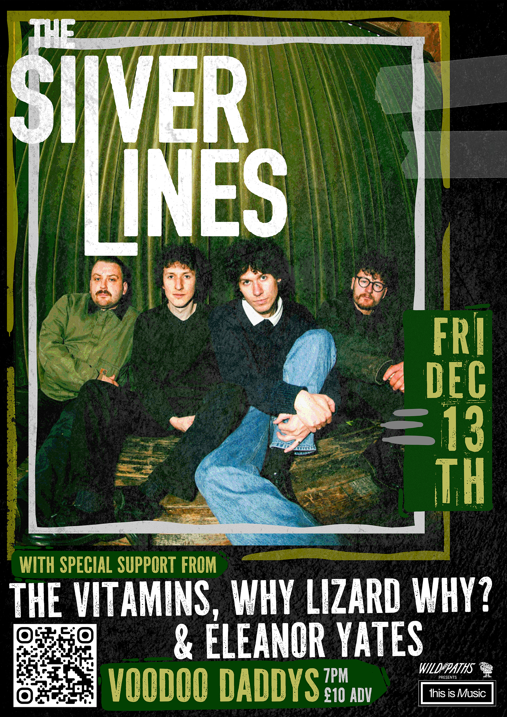 A collection of show posters designed for live music events, combining bold illustration, expressive typography, and strong colour palettes