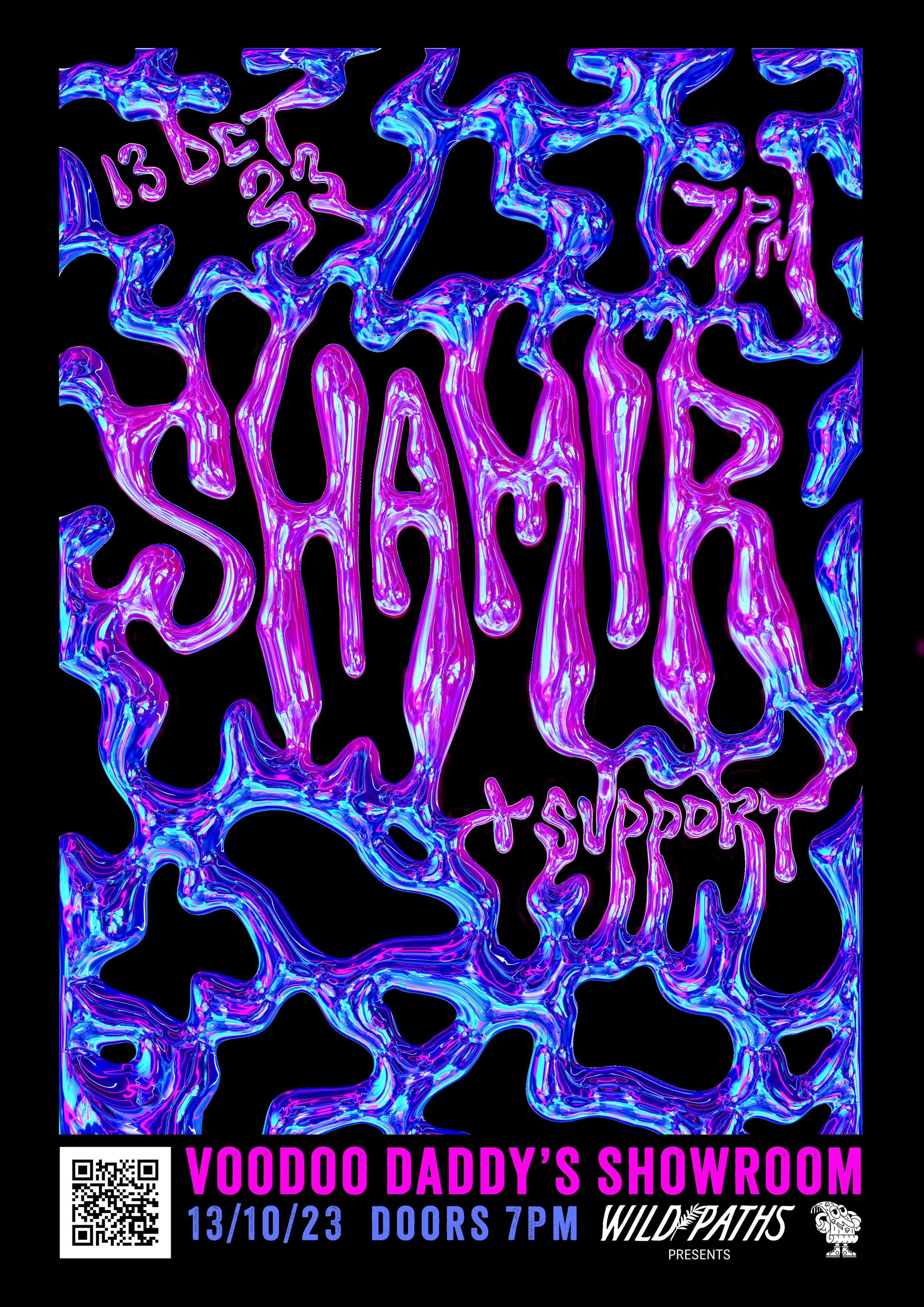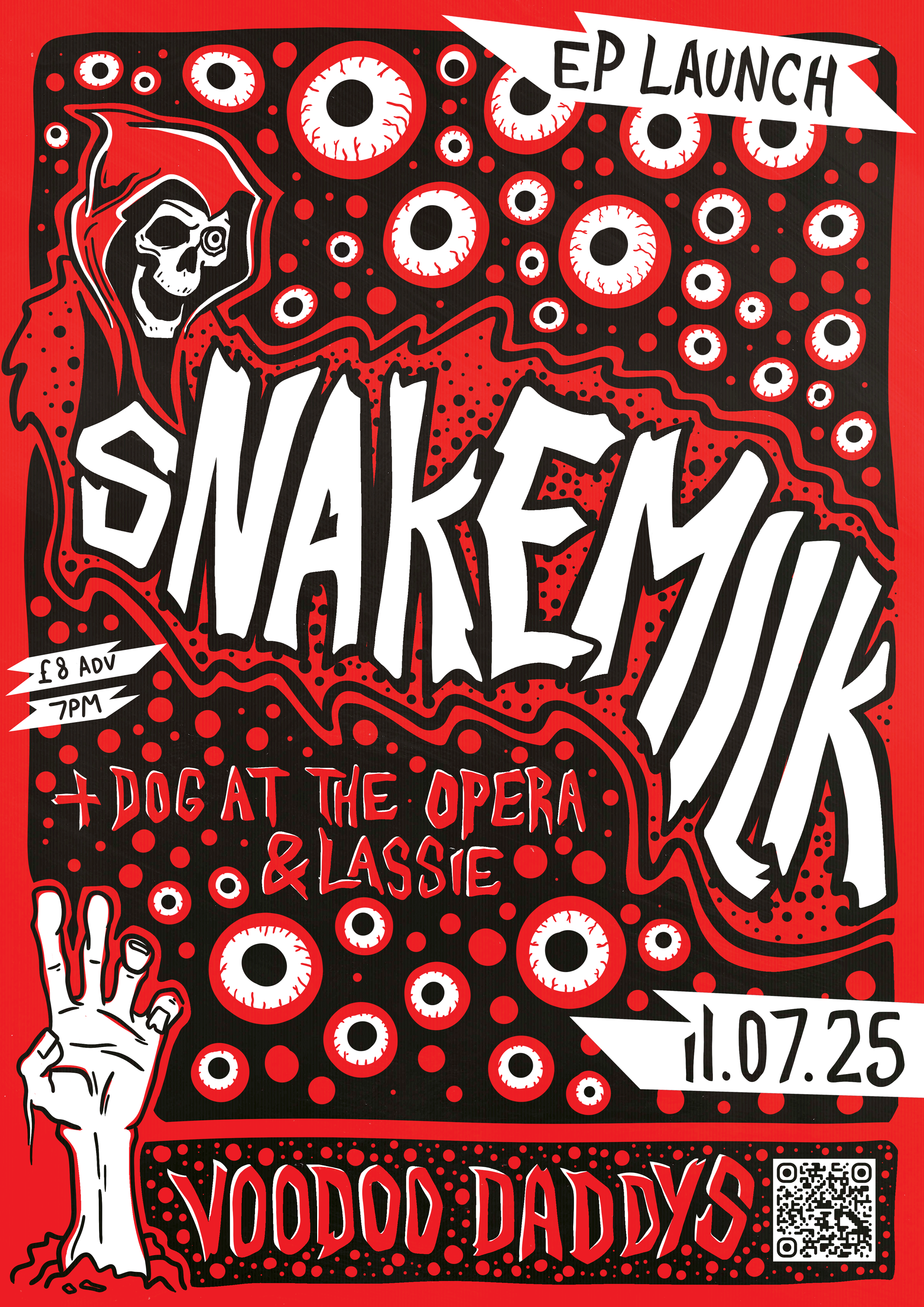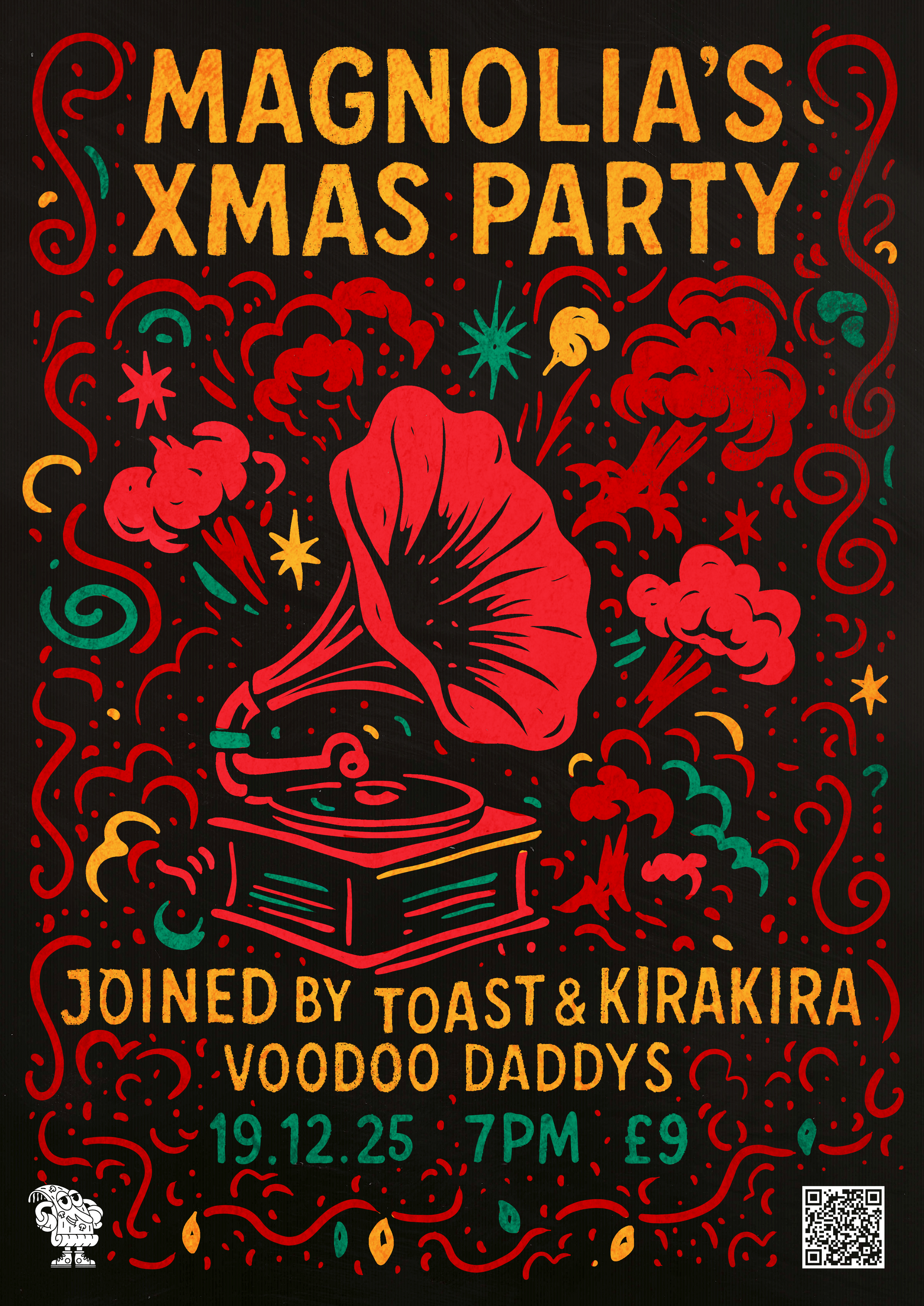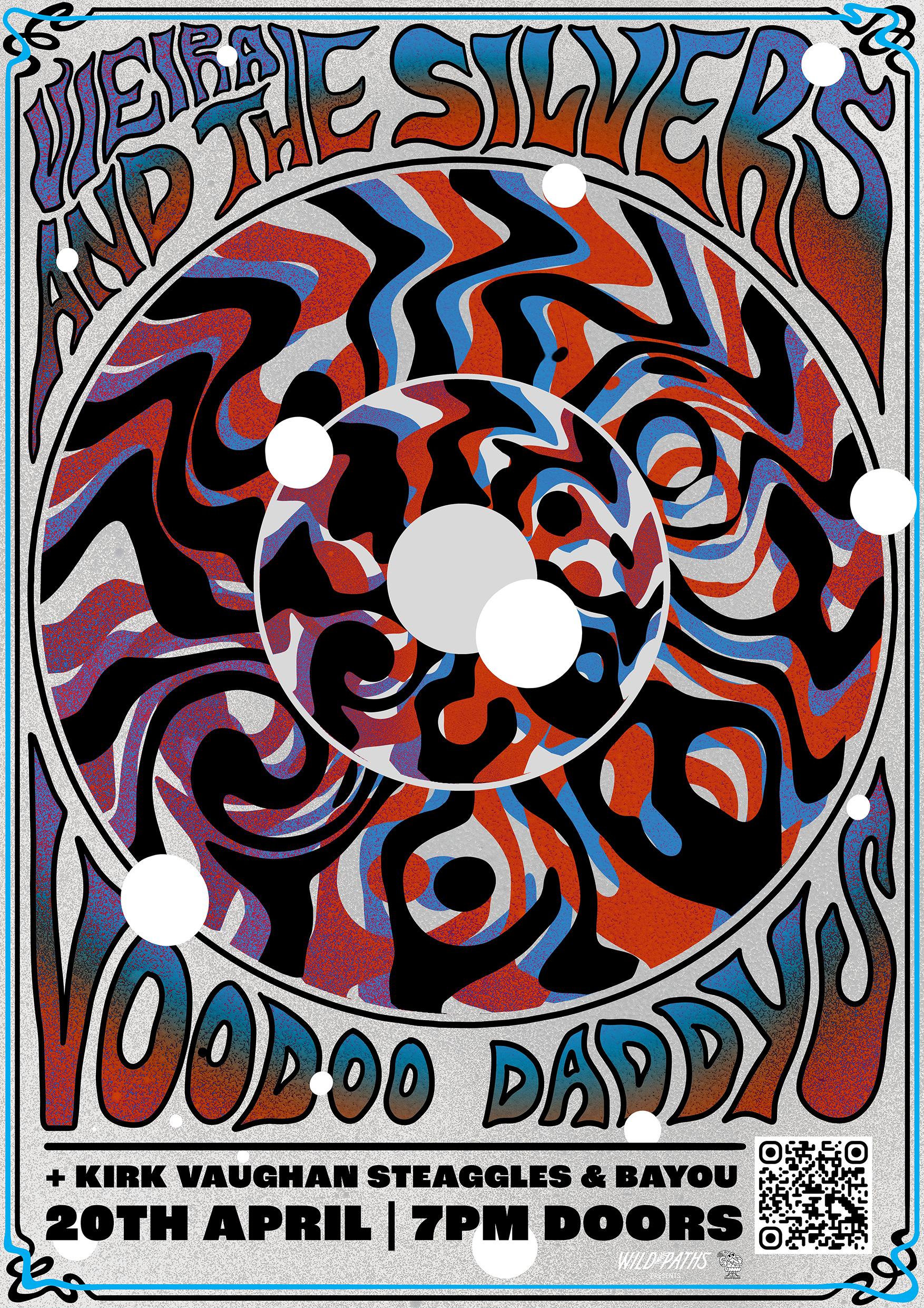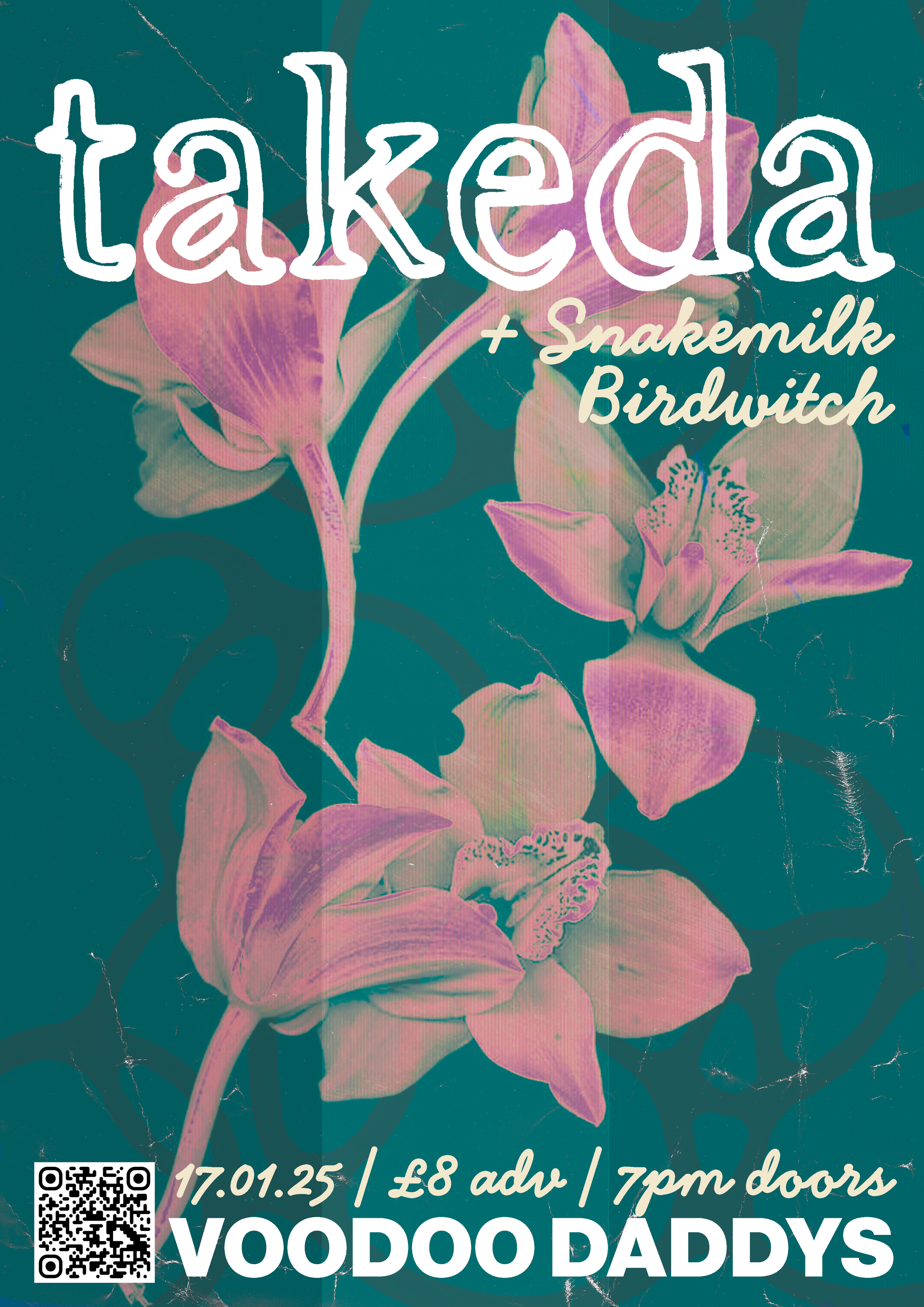 A collection of show posters designed for live music events, combining bold illustration, expressive typography, and strong colour palettes